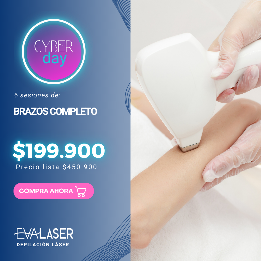 El tratamiento incluye 6 sesiones de depilación LÁSER DIODO en BRAZOS COMPLETOS.